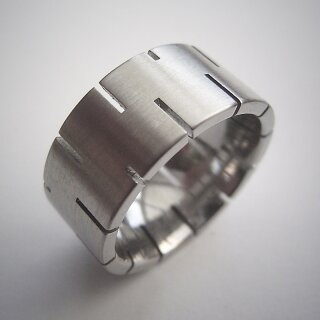 Ausgefallener Ring aus fein mattiertem Edelstahl mit Ausfräsungen - 10 mm - Extravaganter Fingerring - Größe 51