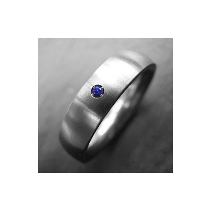 Eleganter Ring aus mattiertem Edelstahl mit blauem synthetischen Saphir - 5 mm - Größe 60